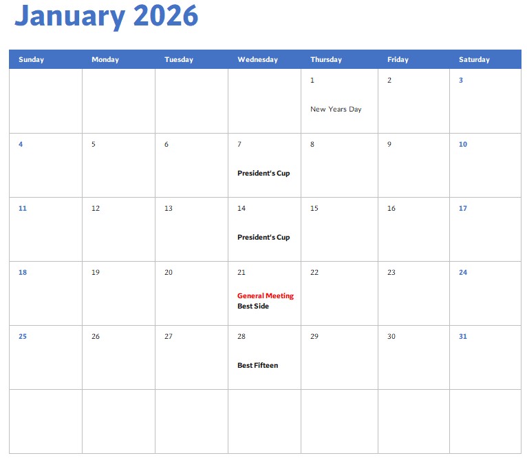 - Winter Scotch – one-day Chapman Scotch format to be played at Arizona National Golf Club on Monday, February 23, 2026