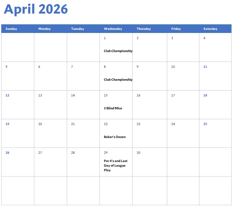 our league ends for the 2025-26 year. Our league year is underway but we would still love to have you come out and join us for a round to see if you would like to join us.